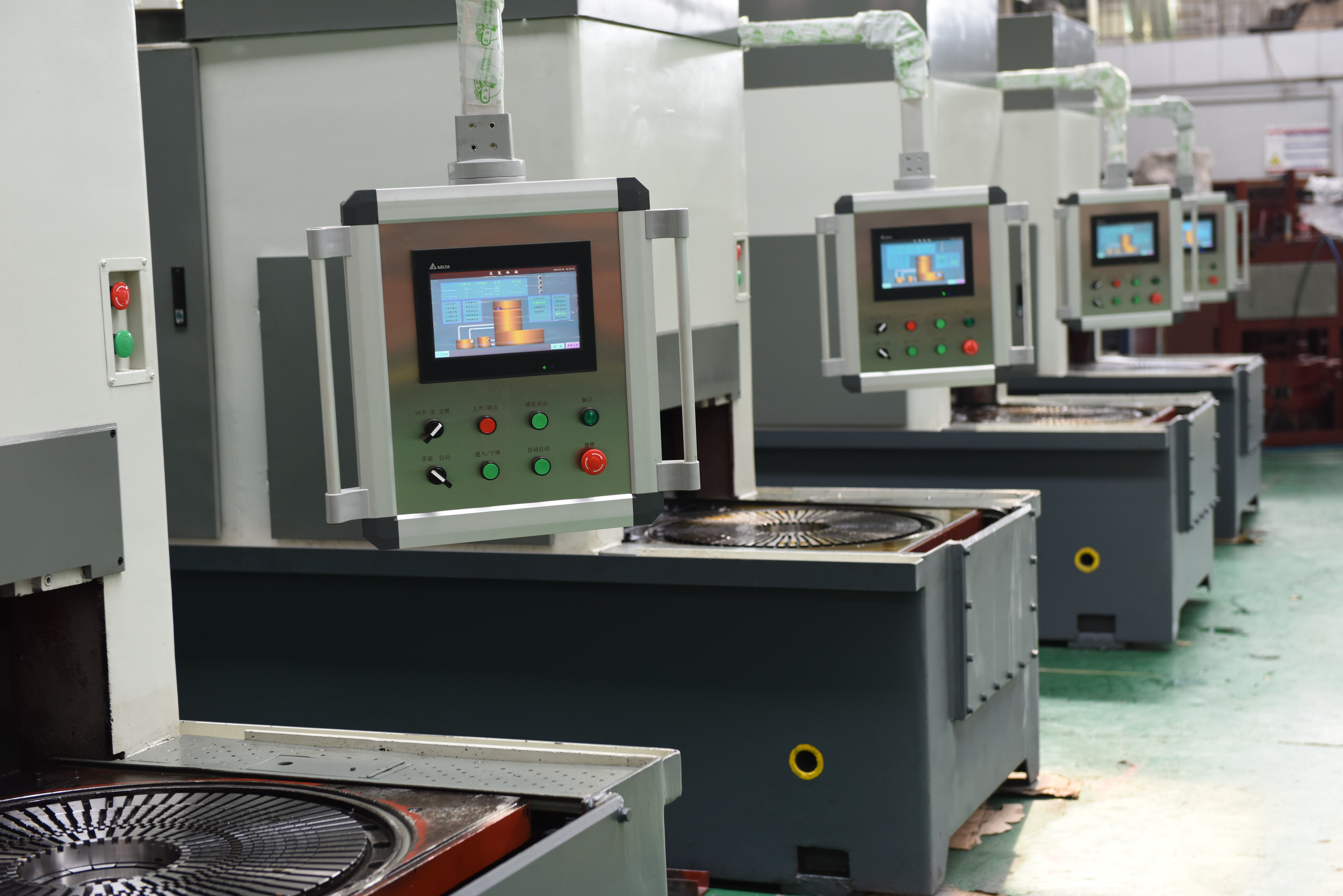 修復后整個淬火過程的動作由PLC可編程控制器自動控制,增加了觸摸屏,使得參數設置更為便捷,工作狀態和故障可直觀顯示,采用懸臂控制箱,可以進行多位置多點操作。淬火油流量改成數控變頻控制,具備超過50份以上壓淬淬火工藝的存儲和調用。增設淬火油油溫檢測控制系統,具備淬火油的油溫顯示功能以及油溫超高、低溫報警功能。